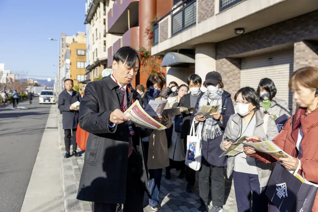 その後、説明会出席者の皆様は、1626年の寛永行幸が行われた中立売通~堀川通のルートを辿るまち歩きへ。