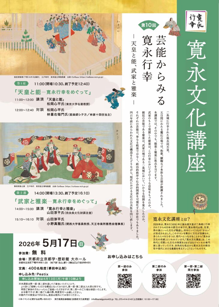 14:00(開場13:30、終了予定16:10) 「武家と雅楽―寛永行幸をめぐって」